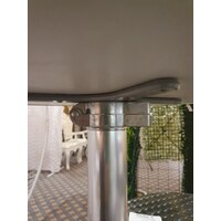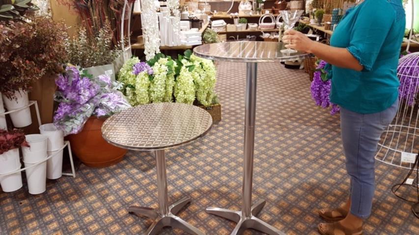 This round cafe pub or club tables are ideal for patrons that like to stand at the table or for use with bar stools, or for a cafe you can adjust the height down to 70cm to suit sitting around in chairs. Light in weight and it's constructed from a high quality aluminium stand with a 60cm diameter stainless steel top.