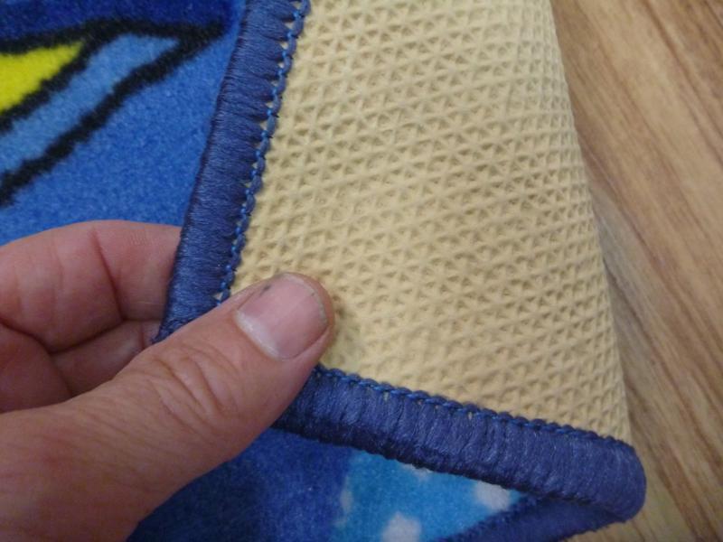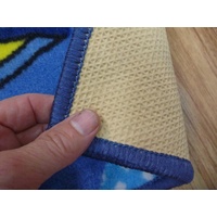 This rug is moth proof and colour fast, keeping the rug bright and colourful. As it is Synthetic, the rug has great uniformity, strength and stain resistance and hose-able in cold water. The rubber backing on the rug will make it resistant to slipping on hard surfaces, also protecting your floorboards and most importantly it is soft on children's knees. We also sell children's activity play mats and they too would be great for the children's room next to their bed or the activity room or just hang it on a wall.