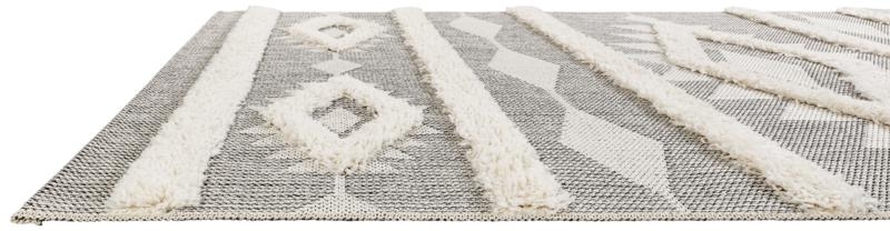 These contemporary design modern area rugs are machine-made in Belgium with a dual textured heat-set polypropylene and polyester yarn. Coming with a 20mm pile height at its tallest and a flat-woven pile at its lowest, these rugs have less points of fibre per square metre due to the difference in loop pile height per design. Each side of this rug has been finished with an over-locked border, using a matching colour, so as to prevent fraying of the yarn and to bring the whole look together.