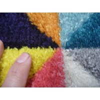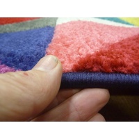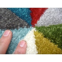 These bright coloured floor area rugs and hall Runners are machine woven in Turkey and finished with over-locking on the edges for a uniform finished look. The pile type used for this Modern Rug is what's known as a frise or twist pile, it's a two-ply yarn where two yarn ends are tightly twisted together, this acts like a spring which keeps on standing up after being compressed, thus being less prone to showing foot marks with exceptional hard wearing properties.