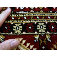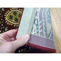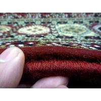 These very high quality Persian design collection of floor are rugs have been over-locked on the two sides and folded back on the ends for that natural un-edged look. The pile type used for this area rug is what's known as a plush pile, and is approximately 15mm in height with a very smooth surface, and as it's very dense, it's less prone to showing foot marks. This rug is machine made in Turkey using the softest synthetic yarns which makes for very low maintenance and great durability.