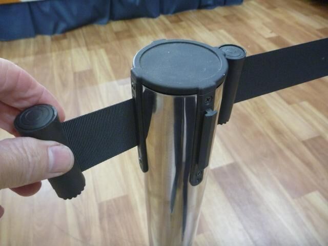 Retractable Black Belt Strap Bollard Hire Explained