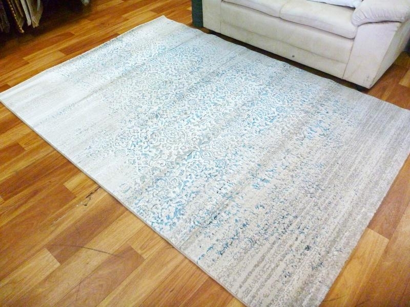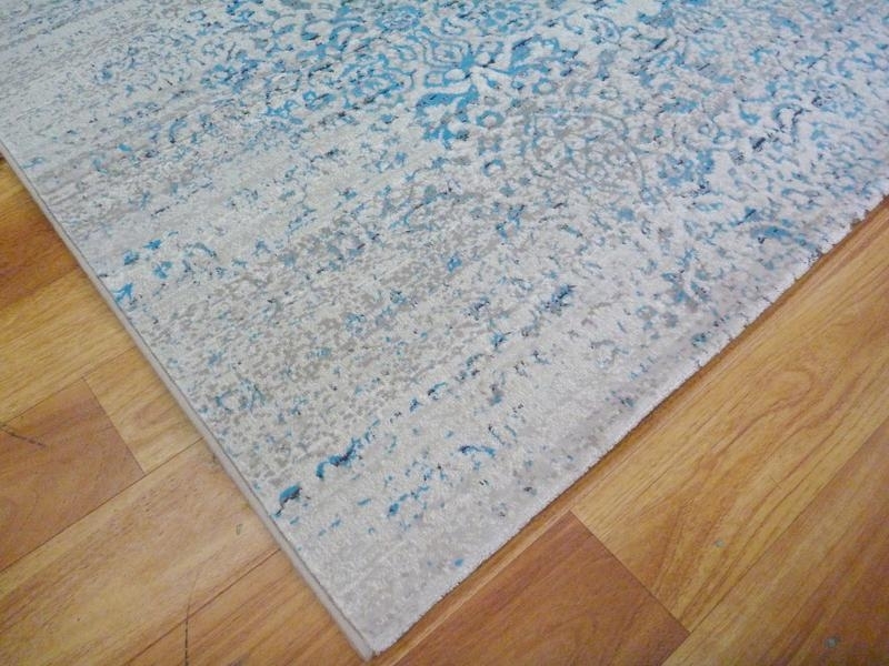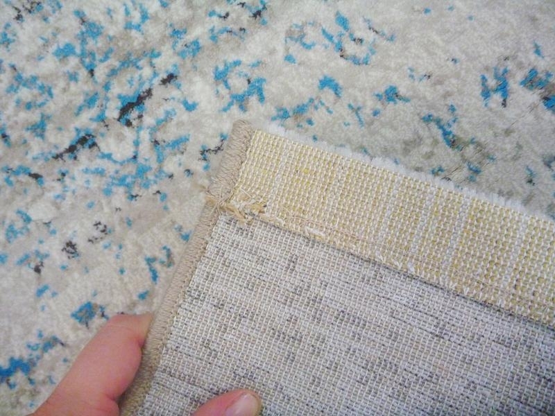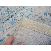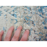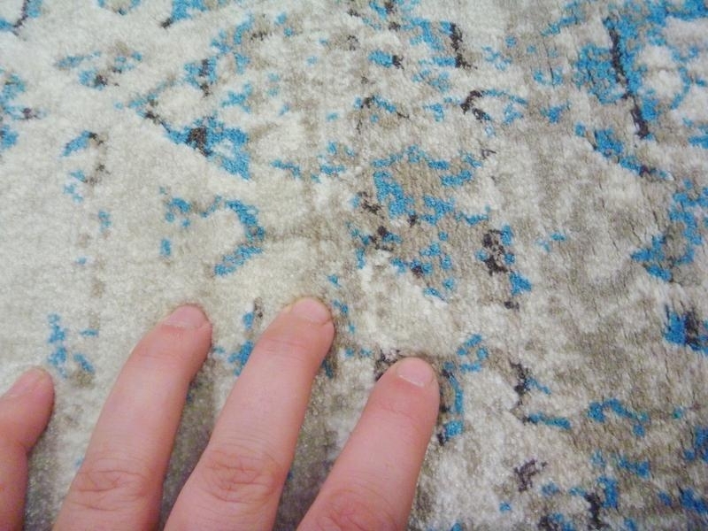 This very high quality modern contemporary design rug is double folded finished on the ends for extra strength and for the uninterrupted un-edged look. The pile type consists of 2 fibers, a heat-set polypropylene being the main, as it will cope with most of the wear and tear, and a shiny super soft polyester, which seems to sit slightly higher above the other fiber in some areas as a luxury highlight feature. The finished surface for this washed distressed design area rug is what's known as a plush pile, so it's a smooth finish surface but very dense, thus being less prone to showing foot marks with exceptional hard wearing properties.
